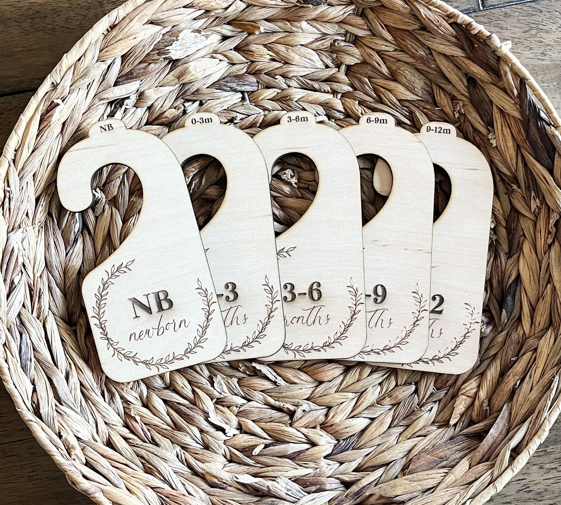 Our closet organizers are the perfect way to keep your little one's clothing sizes organized and easily accessible as they grow! These hangers measure approximately 3 inches wide and 7 inches tall.