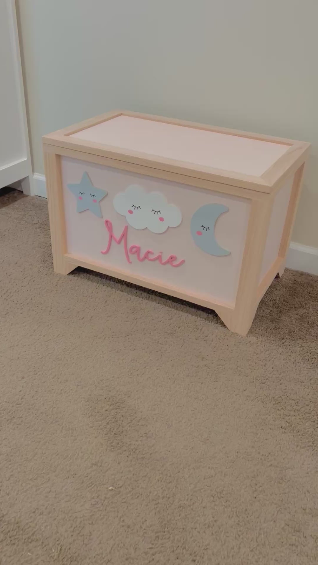 Our handmade toy boxes are the cutest way to keep your little one's toys organized. They are the perfect height for even the littlest one to be able to get toys in and out of! Our toy boxes make the best gifts for baby showers, birthdays or Christmas! Each piece is personalized and will last for years to come!